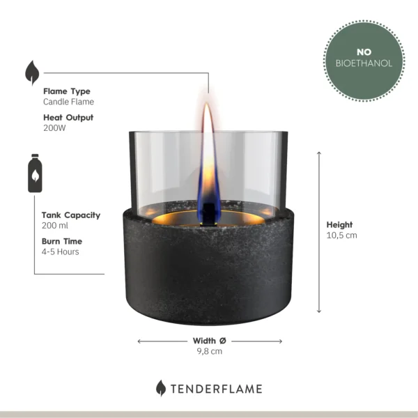 Aster 10 Lava dega naudojant Tenderfuel – inovatyvų, kurą be dūmų, kvapų ar suodžių. Tai saugesnė alternatyva tradicinėms žvakėms, tinkanti naudoti tiek namuose, tiek biure.