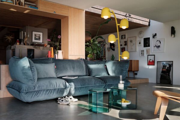 2,34 metro aukščio šio šviestuvo lankas, kaip ir sunkus jo pagrindas, pagamintas iš milteliniu būdu dažyto plieno. Reguliuojami aliuminio gaubteliai leidžia patiems nuspręsti, kur šviečia šviesa. O mygtukas? Tai – šviesos reguliatorius. Du „Big Lebow“ šviestuvus galima sujungti kartu naudojant sujungimo jungčių rinkinį, kad būtų sukurtas pilnas lankas.