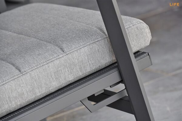 Bondi fotelis puikiai tinka ilgalaikiam poilsiui. Fotelis turi nuostabiai minkštą pagalvėlę, užtikrinančią maksimalų komfortą. Be to, fotelis tikrai trauks kiekvieno aplinkinio akis! Rėmas yra aptakios išvaizdos ir pagamintas iš aliuminio. Nesvarbu, ar norite skaityti knygą vertikaliai, ar sėdėdami, šio fotelio jūsų sode neturėtų trūkti!
