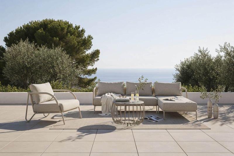 Švelnūs atspalviai, nesenstanti elegancija, viduje ar lauke: pilkšvai rudas aliuminio rėmas ir virvelės detalės suteikia kolekcijai rafinuoto santūrumo. Aukštos kokybės pilkšvai melanžo spalvos pagalvėlės kviečia atsipalaiduoti ir sukurti šiltą, jaukią atmosferą. Nesvarbu, ar esate vieni su gera knyga, ar kartu su artimaisiais – CAI siūlo gryno lengvumo akimirkas po atviru dangumi.