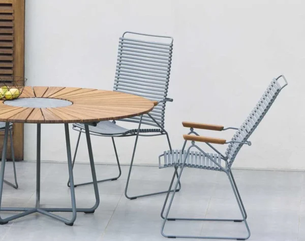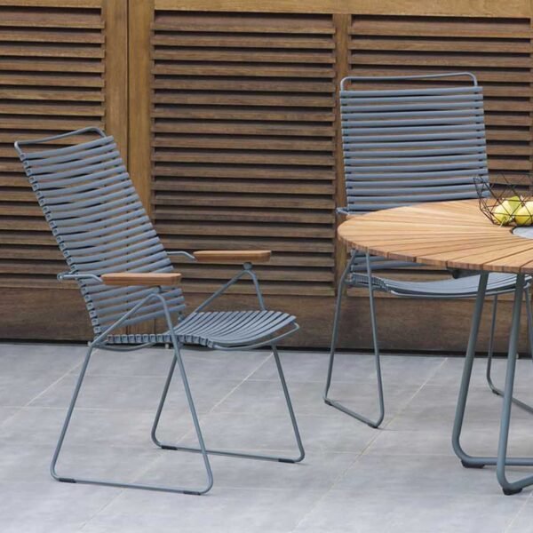 Click kėdė su aukštu atlošu, atspari įvairioms oro sąlygoms, todėl skirta drąsiai naudoti lauke. Nepriekaištingos kokybės baldai pagaminti iš kokybiškų ir ilgaamžių medžiagų.