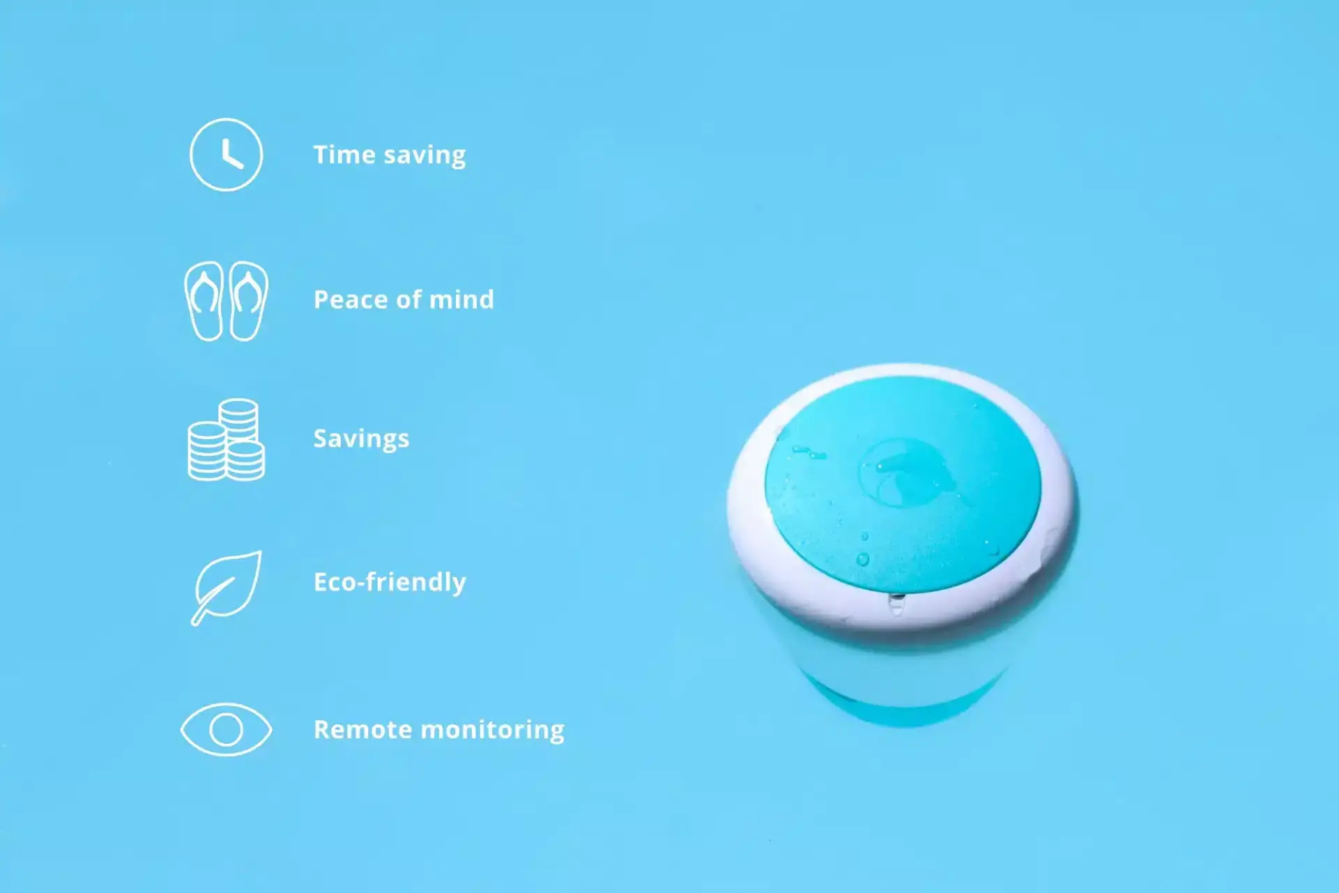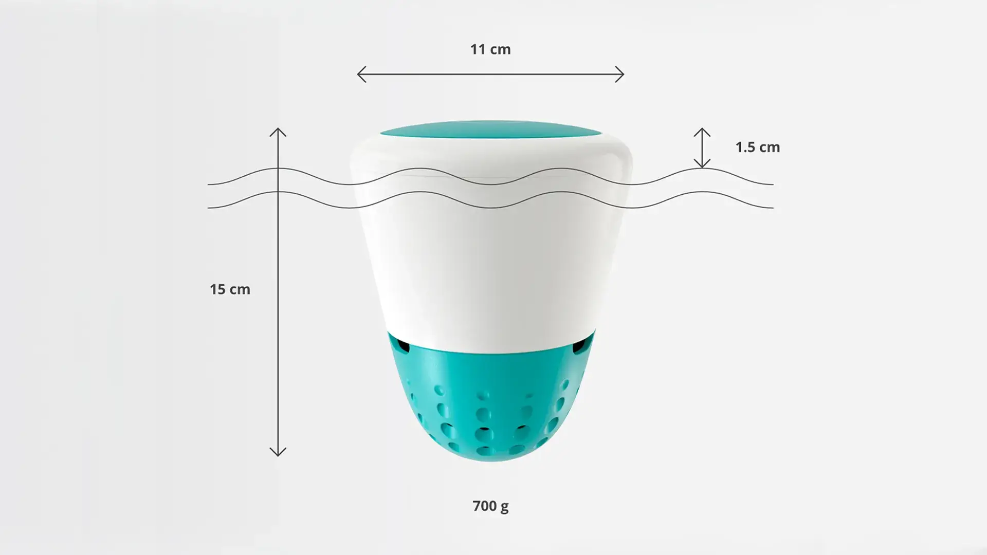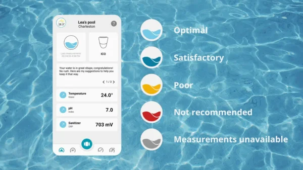 ICO baseino vandens analizatorius yra prie interneto prijungtas jutiklis, kuris nuolat stebi jūsų vandenį. Jis kasdien padeda jums per ICO mobiliąją programėlę, pateikdamas vertingų patarimų, kaip paprastai ir lengvai prižiūrėti baseiną. Dėl patikimų duomenų realiuoju laiku tiksliai žinosite, ko jūsų baseinui reikia, kad palaikytumėte švarų vandenį.