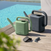 MOJA laistytuvas padaro augalų priežiūrą paprastą ir malonią. 5 arba 10 litrų talpos šis stilingas laistytuvas patikimai palaisto įvairaus dydžio augalus. Dėl ergonomiškos, aplink visą korpusą esančios rankenos jį patogu laikyti net ir pilną. Tvirtas, modernus dizainas atrodo patraukliai ir užtikrina stabilų pastatymą. Išorėje esanti aiškiai matoma vandens lygio skalė leidžia lengvai stebėti vandens kiekį. Išskirtinė kubo forma paverčia laistytuvą stilingu akcentu sode ar terasoje. Galima rinktis iš trijų modernių spalvų, derančių prie jūsų žaliosios erdvės.