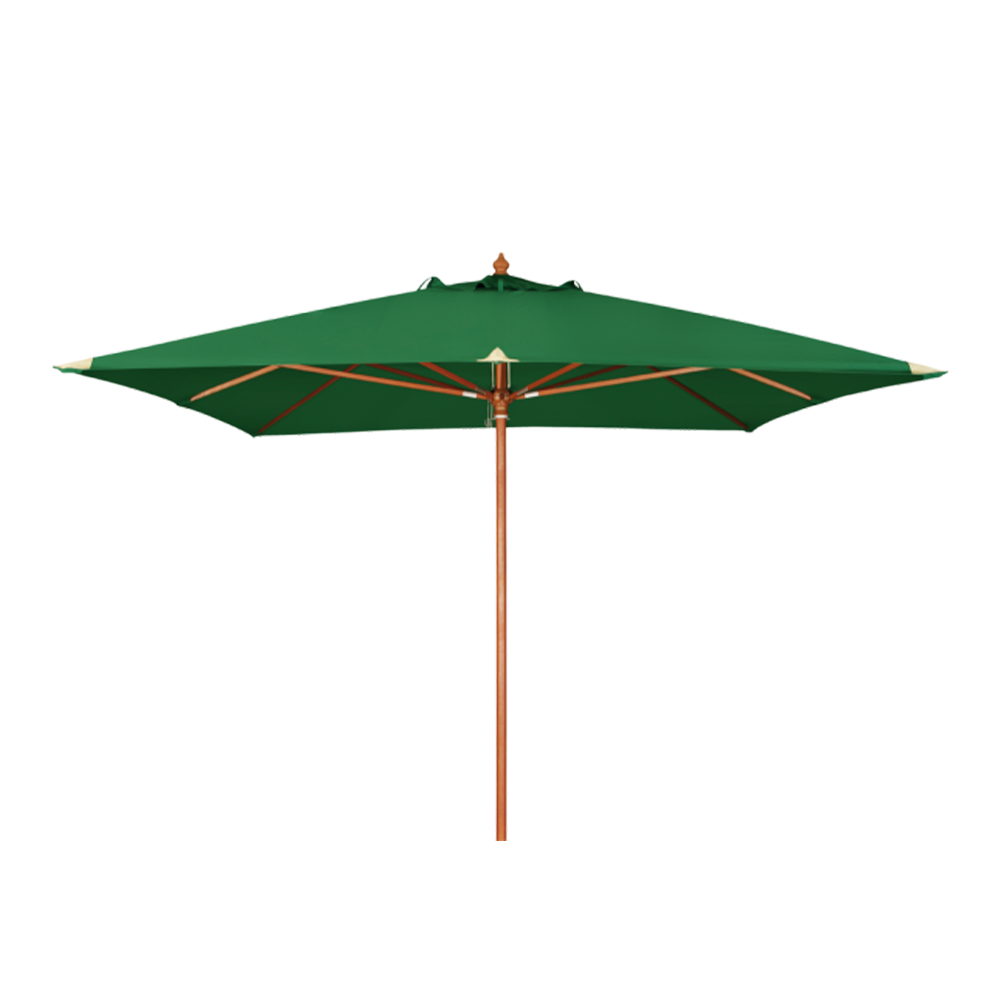 Prabangus skėtis puikiai dera prie medinės terasos ar mediniu lauko baldų, dėl medinio rėmo. Kvadratinis skėtis turi vientisą, tvirtą medinį stiebą, o strypų jungtys sutvirtintos metalo movomis. Aukštos kokybės poliesterio tentas atsparus blukimui, puikiai apsaugo nuo UV spindulių. Kampuose sustiprintas odinėmis detalėmis, kad būtų išvengta plyšimų.