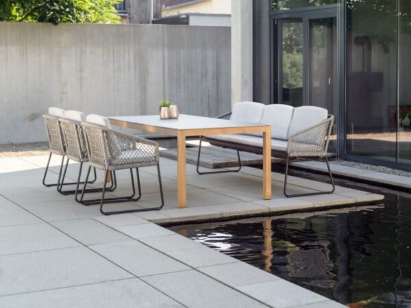Odea serijos lauko baldai atrodo pagaminti iš polipropileno, yra dviejų atspalvių. Kartu su spalvomis suderintomis sėdynių pagalvėlėmis, Odea trvietis suolas atrodo ypač stilingai.