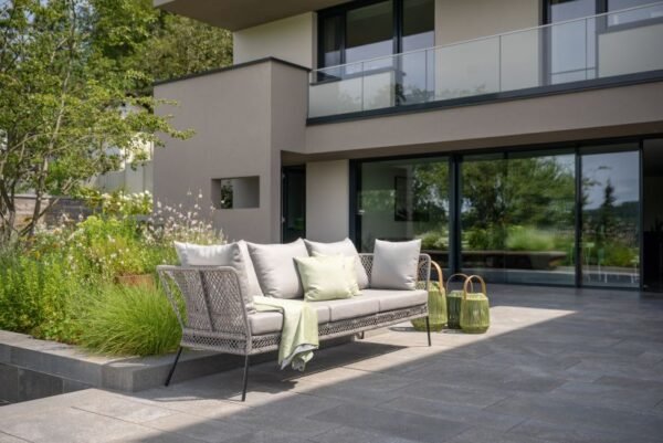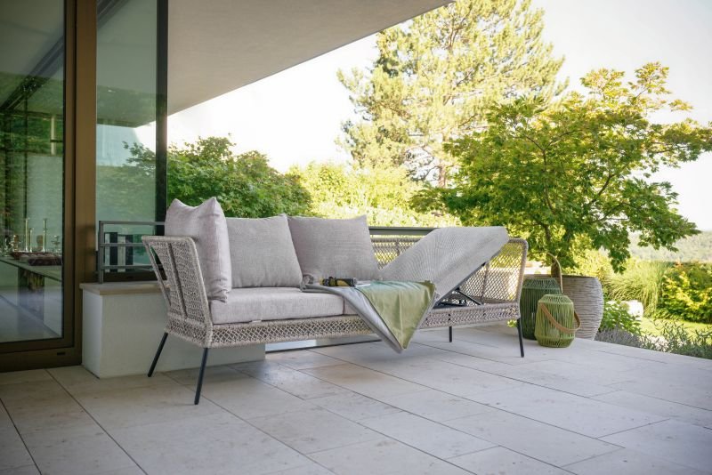 Odea serijos lauko baldai atrodo pagaminti iš polipropileno, yra dviejų atspalvių. Kartu su spalvomis suderintomis sėdynių pagalvėlėmis, Odea suolas/sofa atrodo ypač stilingai.