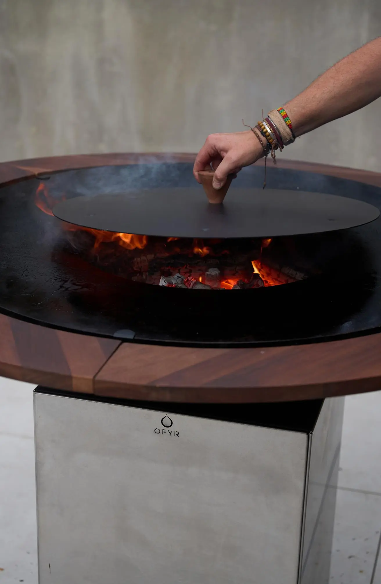 OFYR 100 dangtis specialiai sukurtas saugiai užgesinti anglies likučius jūsų griliuje. Dangtis pagamintas iš juodai dengto plieno ir pritvirtinta tikmedžio rankenėlė. Be to, pridėti 6 išsikišimai, kad dangtis neslystų, kai dengia ugnį. Dangtis skirtas 85, 100 ir XL modeliams.