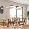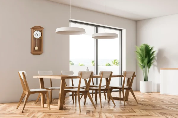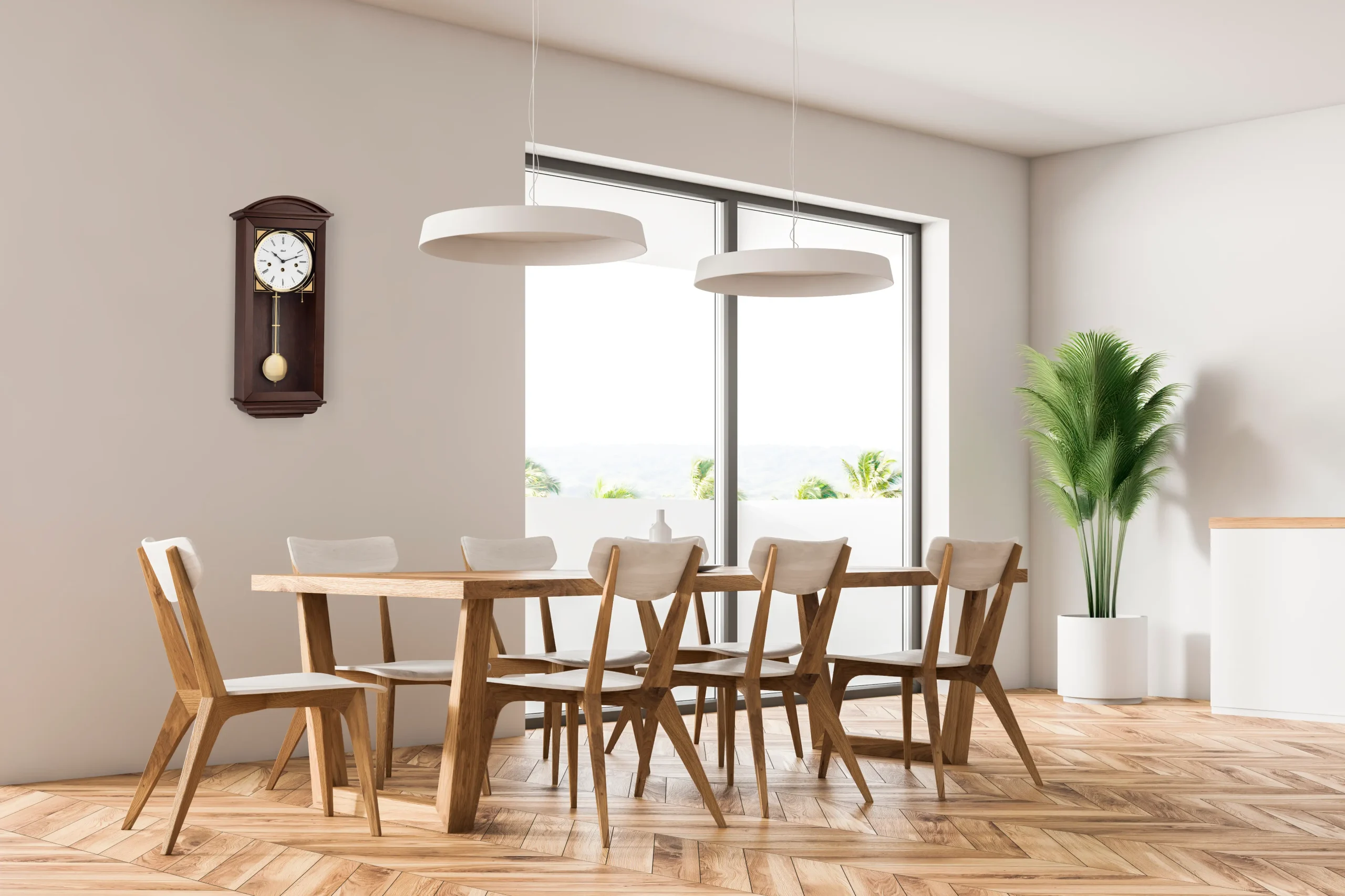 TAYLOR elegantiškas, sieninis reguliuojamas laikrodis, pagamintas iš aukštos kokybės medienos. Stilingos stiklinės dekoracijos, sidabriniai arba žalvariniai jungiamieji elementai pabrėžia modernų dizainą.